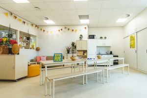 | Voor de jongere kinderen: Een speelhoek voor knutselen, bouwen met blokken en verkleedpartijtjes. |